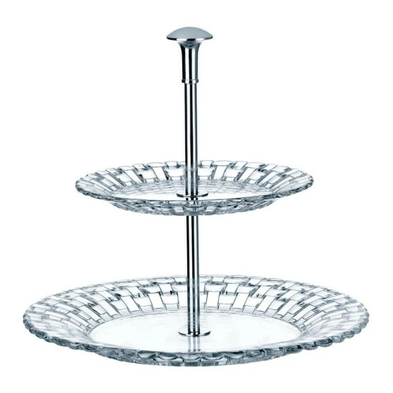 - 2-tlg. Etagere mit brillanter Korbstruktur aus Kristallglas für die Präsentation von Gebäck, wie z.B. Plätzchen, Törtchen oder Süßigkeiten, Häppchen, Snack und andere kleine Speisen