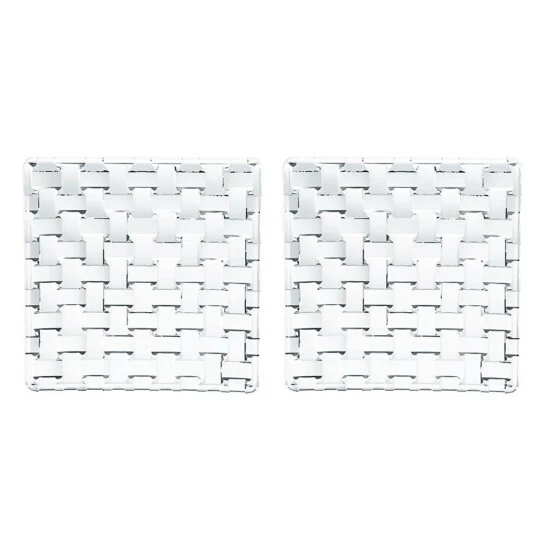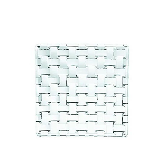 Die quadratischen Tischplatten aus der Reihe Bossa Nova überzeugen mit einem geflochtenen Design, das trotz klarem Kristallglas für optische Abwechslung auf dem Tisch sorgt.