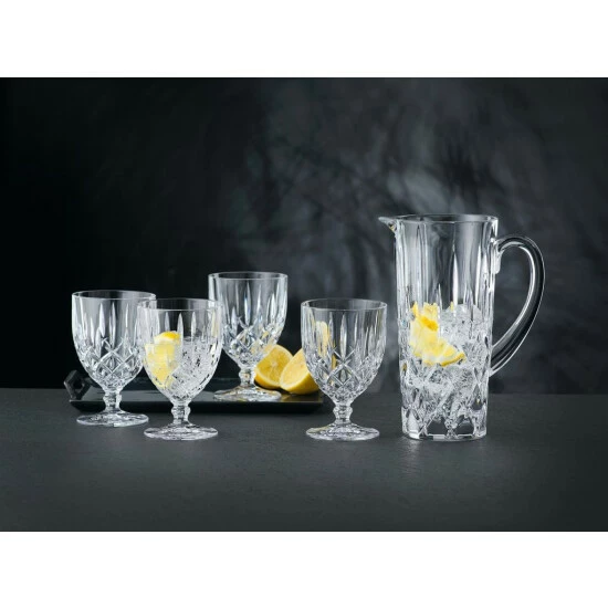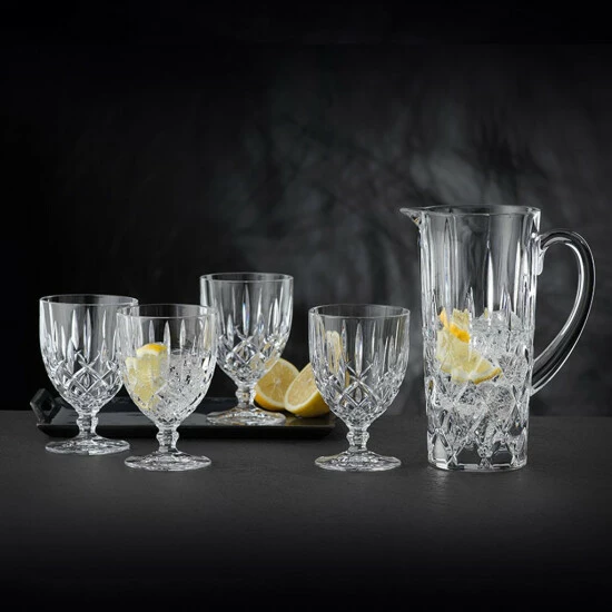 Genießen Sie zum Hauptgang ein köstliches Glas Wasser mit dem Nachtmann Gläser Set mit Kanne Noblesse 5-teilig! Die Gläser sind aus Kristallglas gefertigt und daher äußerst robust und langlebig. Das Gläser Set besteht aus: