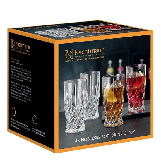 Nachtmann | Softdrinkglas Noblesse 4er SetSoftdrinkglas aus der Klassiker Serie NoblesseGeschliffenes Kristallglas in Deutschland gefertigtGeeignet für Wasser, Bier und viele andere KöstlichkeitenHöhe: 14,6 cmDurchmesser: 7,5 cmVolumen: 350 mlspülmaschinengeeignet