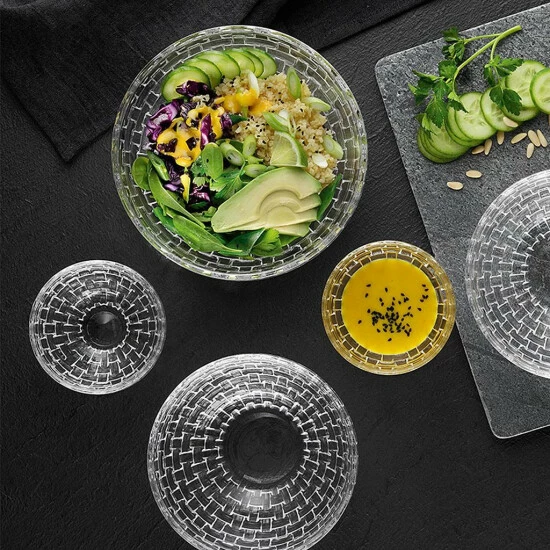 Schale mit facettenreicher Korbstruktur aus brillantem Kristallglas – für die Familienfeier, die festliche Tafel oder als Geschenk. Edles Design: Einmaliger Lichtglanz, Korbstruktur schimmert in unzähligen Facetten. Kreative Flechtoptik als Reflexion der musikalischen Experimentierfreude des Bossa Nova für ein einzigartiges Ambiente. Lieferumfang: 1 Nachtmann Schale Bossa Nova 23 cm.