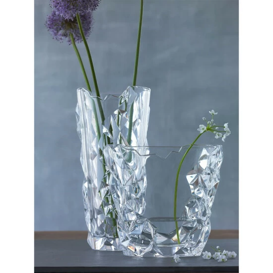 Bei SCULPTURE spielt die komplexe Geometrie des unbearbeiteten Teils der Kristallvase mit der Lichtreflektion. Zusammenmit der Perfektion des bearbeiteten Teils und seiner brillanten Lichtbrechung hat Nachtmann nicht nur ein Glas oder eine Vase geschaffen, sondern eine moderne Skulptur.