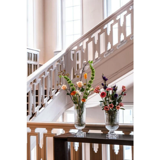 Die Nachtmann Vase Minerva 32 cm ist ein beeindruckendes Centerpiece für hohe Räume. Sie hat einen festen Stand und bietet so auch großen Blumenarrangements Raum.
