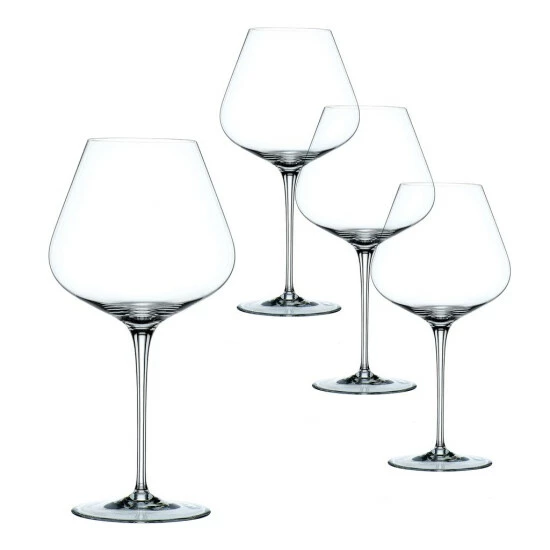 4-teiliges Burgunderglas-Set, Für die festliche Tafel oder als Geschenk für die Liebsten, Edle Optik dank dünnwandiger, ungeschliffener und farbloser Gläser mit großem Bauch Durchdachte Glasarchitektur: In Zusammenarbeit mit namhaften Sommeliers und Gastronomen entwickelt – Glaskelch in Form, Größe und Durchmesser perfekt abgestimmt auf Burgunderweine Optimierung der Sinneseindrücke: Entfaltung des Weinaromas in Qualität und Intensität, Betonung des vielfältigen Mundgefühls, Harmonischer und anhaltender Nachgeschmack, Ausgewogenheit der Inhaltsstoffe Designed in Germany: Spülmaschinen- und bruchfest durch Anwendung des Platinum-Glas-Prozesses, Keine Beeinträchtigung der Glasqualität nach zahlreichen Spülgängen, Verarbeitung reinster Zutaten und spezieller Rohstoffe Lieferumfang: 1x Spiegelau & Nachtmann BurgunderGläser-Set 4tlg. ViNova, 0098072-0, Material: Kristallglas, Füllmenge: 840 ml, Höhe: 24 cm, Durchmesser: 12,2 cm, Gewicht: 920 Gramm