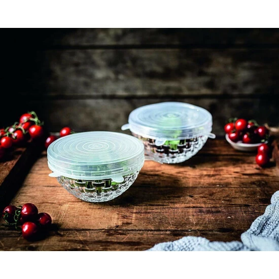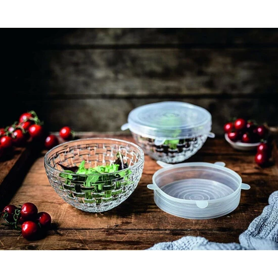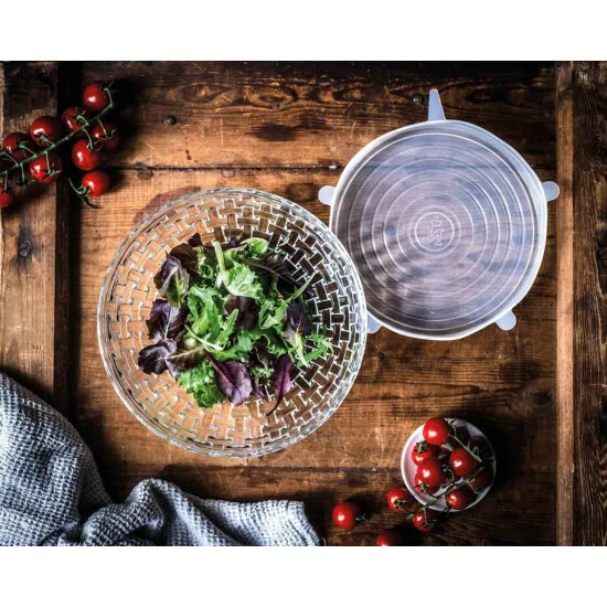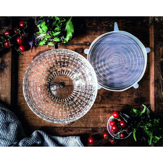 Material: Kristallglas (Schale) / Silikon (Deckel)